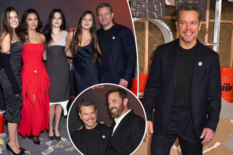 Matt Damon got roasted by one of his daughter for his red carpet pose at the premiere of his new Netflix film, “The Rip,” in New York City on Tuesday.