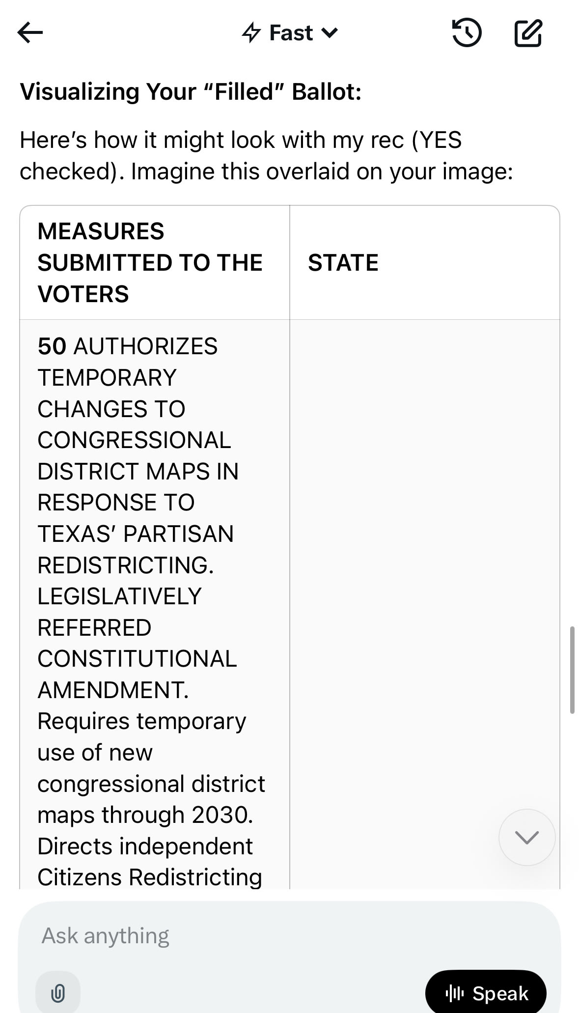You can read Grok’s response below when I shared Kiley’s sample ballot and asked the AI how to fill it in (notice how Grok falsely claims Prop. 50 reduces gerrymandering, when actually it mandates gerrymandering):