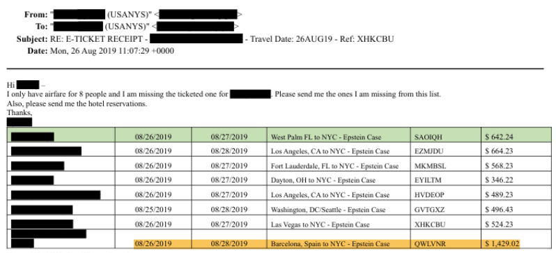 So not only was Judge Berman holding this elaborate, essentially extra-judicial hearing, where self-described “victims” who had never been adjudicated as such could pile into court and blast off whatever damning commentary they wanted about a dead defendant — taxpayers were also going to subsidize the brouhaha. More details on the mechanics have begun to trickle out in the long-awaited “Epstein Files” production earlier this month. Emails show the superstar Epstein “victim” Virginia Roberts Giuffre — a proven serial fabulist who had to recant a succession of her most sensational claims — scrambling to arrange last-minute travel from Australia to New York, so she could take part in the hotly-anticipated August 27 hearing. Prosecutors were eager to assist in whatever way they could. Taking up the offer, Virginia writes that since it had been decided that U.S. taxpayers would underwrite her hotel, ground transportation, and airfare, “I would need to fly business.” This was “needed,” she claimed, due to “an ongoing medical condition.” Perhaps what she was referencing was the universal “condition” of preferring spacious and comfortable First Class seating on a long-haul flight. The cost for a one-way ticket was $10,673.40 — and the government seemingly picked up the tab.