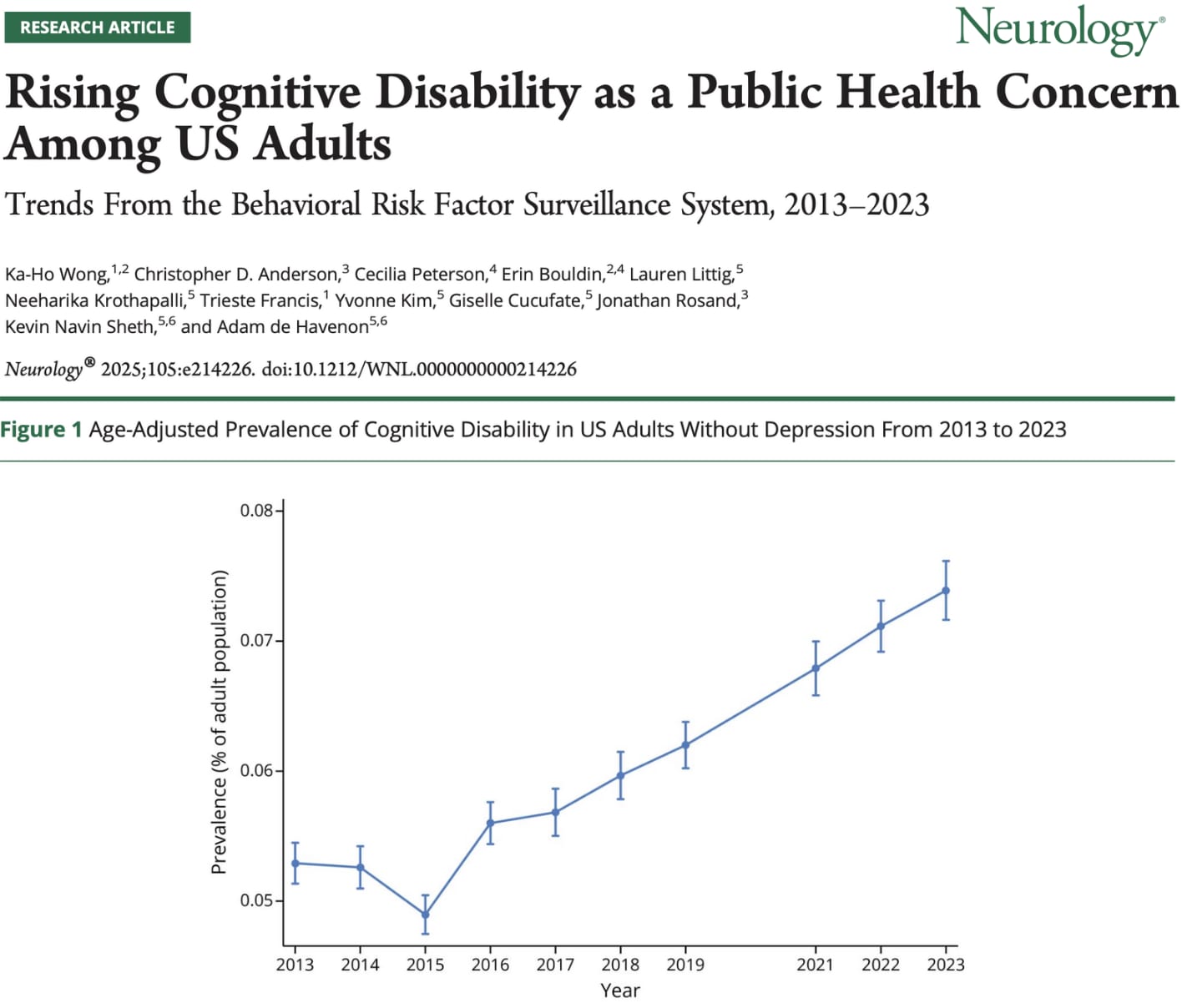 A major new Neurology study analyzing more than 4.5 million U.S. adults has uncovered a striking trend: self-reported cognitive disability—difficulty concentrating, remembering, or making decisions—has surged by 40% over the past decade.