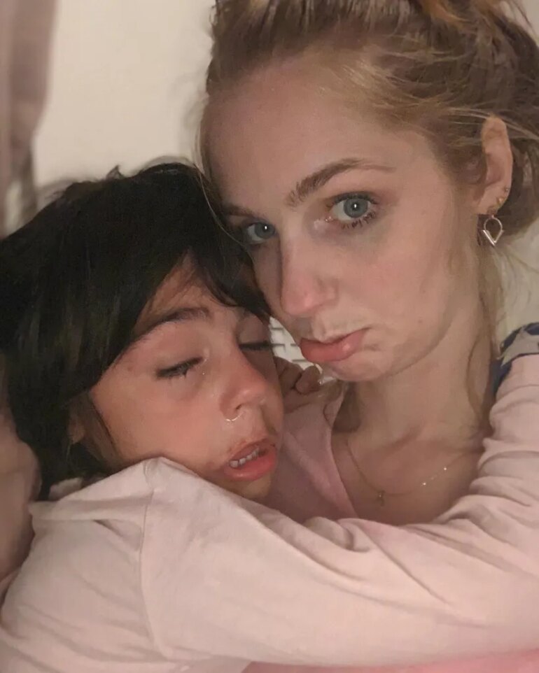 Talitha comforting Lanu-Skylar, who is crying.