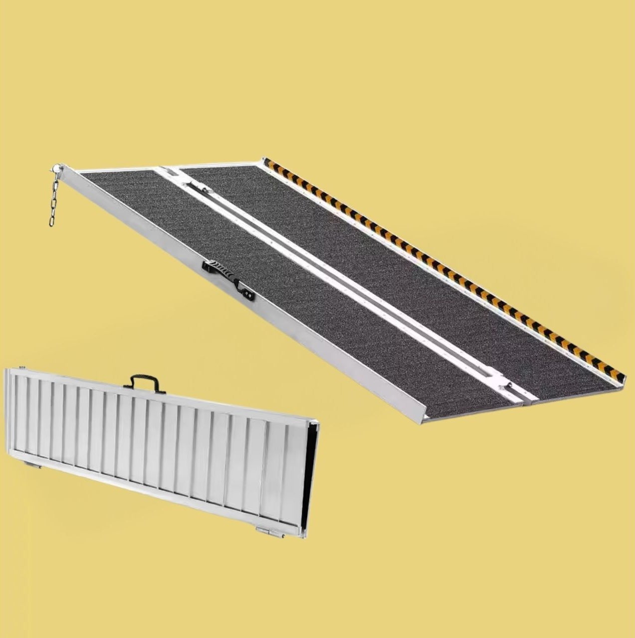 We chose this ramp because it seemed to be one of the most portable and easy-to-install options. It’s built with an edge-to-edge traction tape surface, has a sturdy welded design and folds up like for easy transport.