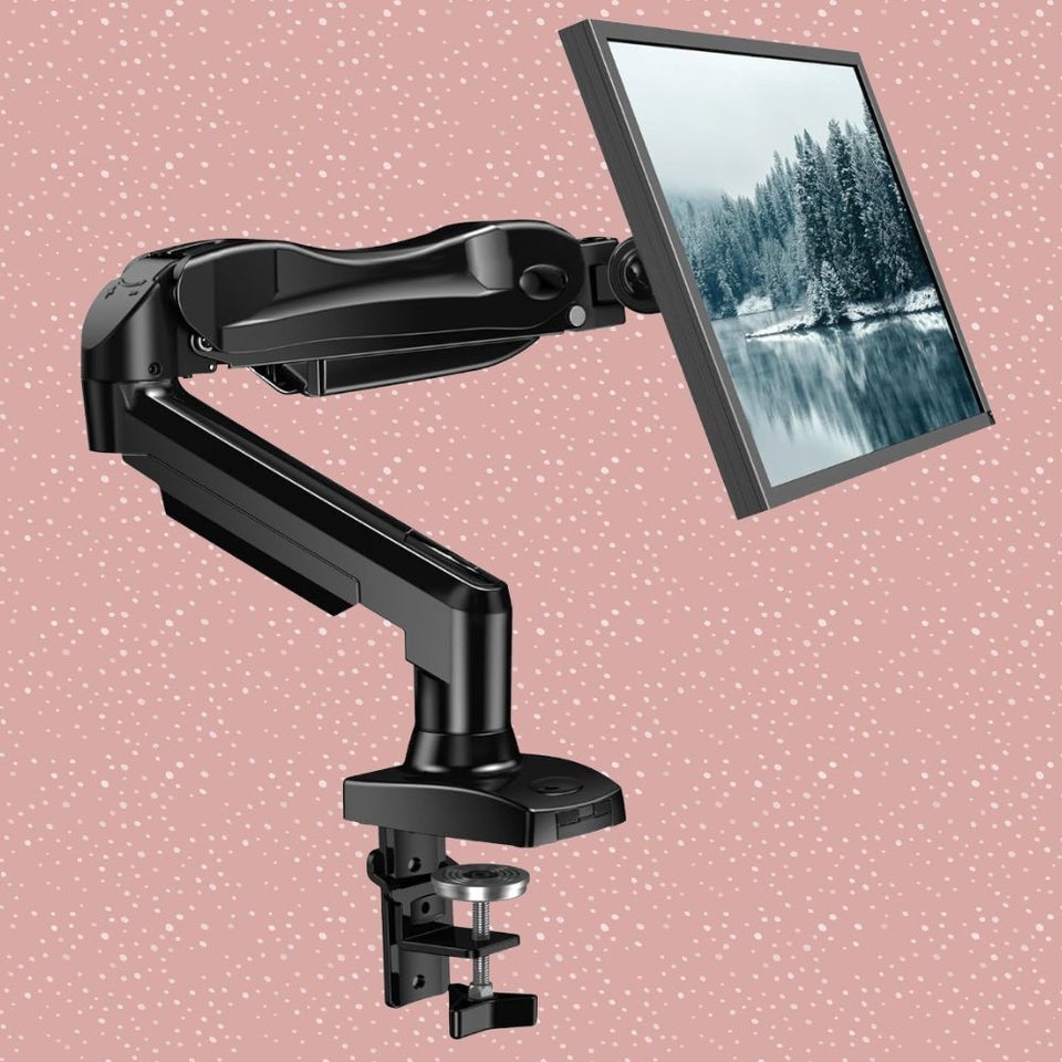 We selected this adjustable monitor arm for its 4.6 out of 5-star rating on Amazon, across 15,600+ reviews. It promises great adaptability across a variety of monitor types and stability. Once your monitor is attached using the quick screw installation, your screen can tilt, swivel and rotate 360 degrees.
